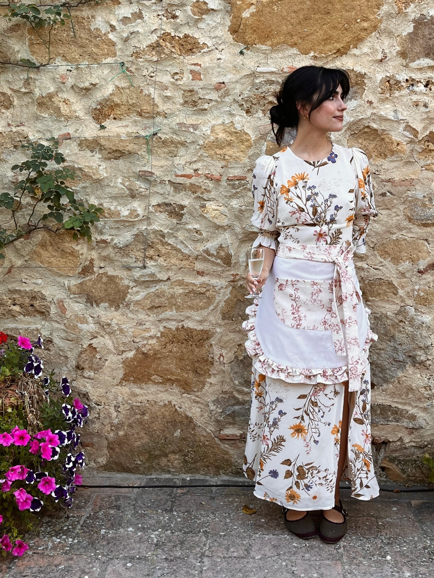 Ciruelo es un delantal reversible, ideal para cuando recibes invitados en casa y quieres ocultar tus manchas para verte impecable. Es delicado, femenino y al ser de medio cuerpo te permite cocinar sin dejar de lucir tu ropa.
